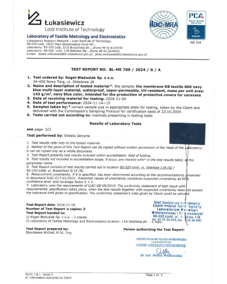 Plachta na obytný přívěs, d. 600-630 cm + taška