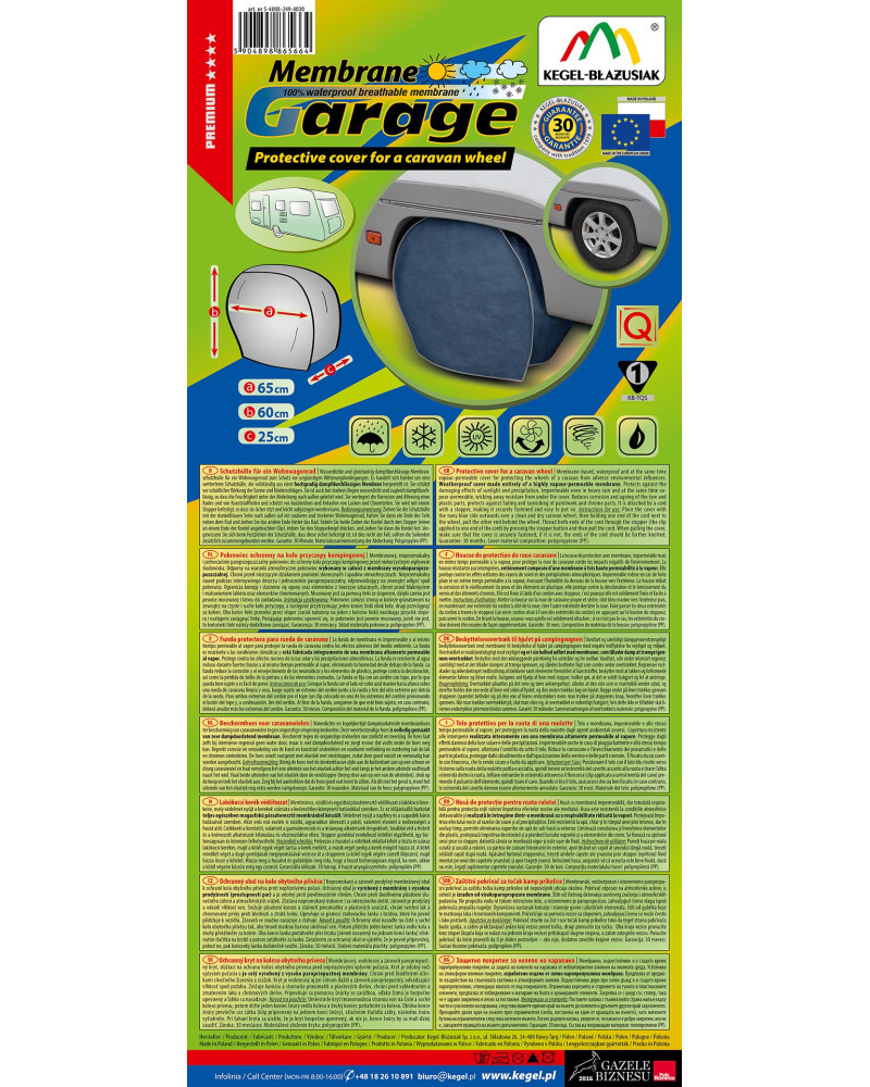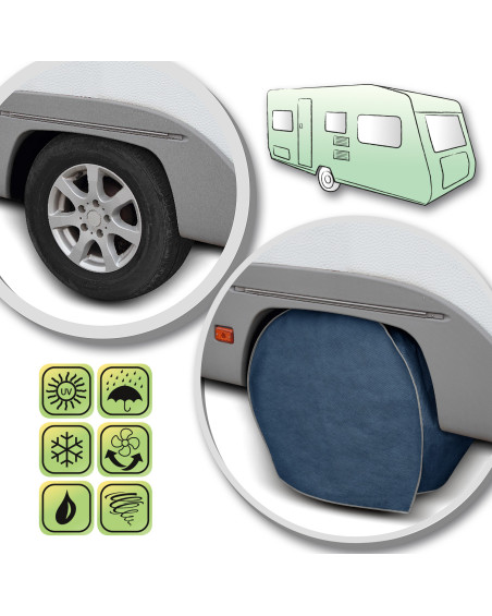 Nepromokavý a zároveň prodyšný membránový obal k ochraně kola obytného přívěsu proti nepříznivému počasí. Ochranný obal je vyrobený z membrány s vysokou prodyšností (prostupností par) a je odolný proti povětrnostním vlivům. Chrání proti škodlivému působení slunečního záření a atmosférických srážek. Zůstává nepromokavý dokonce i za intenzívního deště, zároveň je prodyšný a odvádí vlhkost ven. Snižuje působení koroze a stárnutí pneumatiky a plastových součástí, chrání svrchní lak a chromované prvky proti blednutí a ztrátě lesku. Upevňuje se pomocí stahovacího lanka s brzdou, které ho pevně přidržuje k vozidlu. Zároveň se snadno nasazuje a stahuje.