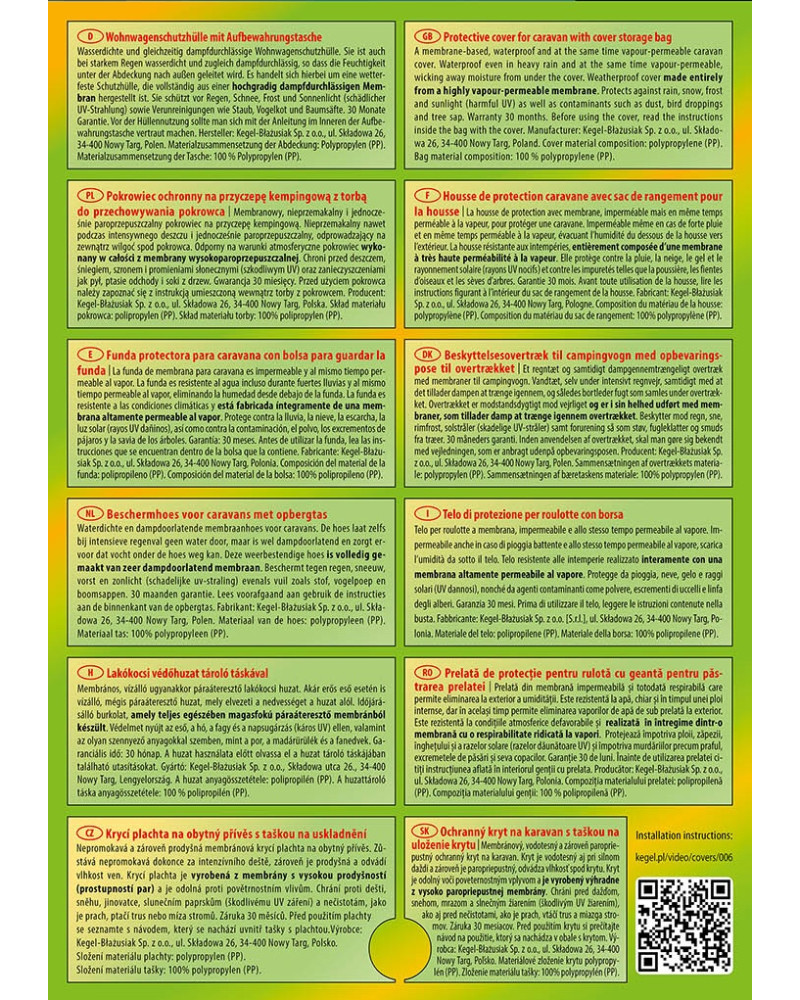 Dobrá krycí plachta musí chránit automobil nejen před atmosférickými srážkami, znečištěním a slunečními paprsky, ale musí být také bezpečná. Právě takové jsou krycí plachty na auta značky Kegel-Błażusiak. Naši odborníci se věnují dlouhodobým zkouškám krycích plachet na automobily. Testujeme je z hlediska účinnosti ochrany proti povětrnostním vlivům, odolnosti proti vodě, propustnosti vodních par směrem ven, bezpečnosti materiálu plachty vůči laku vozidla a účinnosti připevnění plachty na vozidle za běžného i extrémního počasí. Na trh dodáváme pouze takové výrobky, které v dlouhodobých testech dopadly pozitivně.