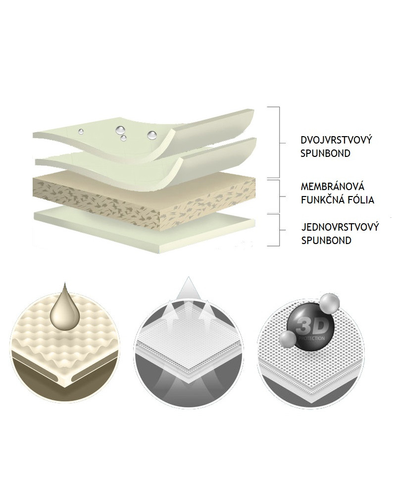 -voděodolný a paropropustný materiál, odvádějící vodní páru zpod potahu;