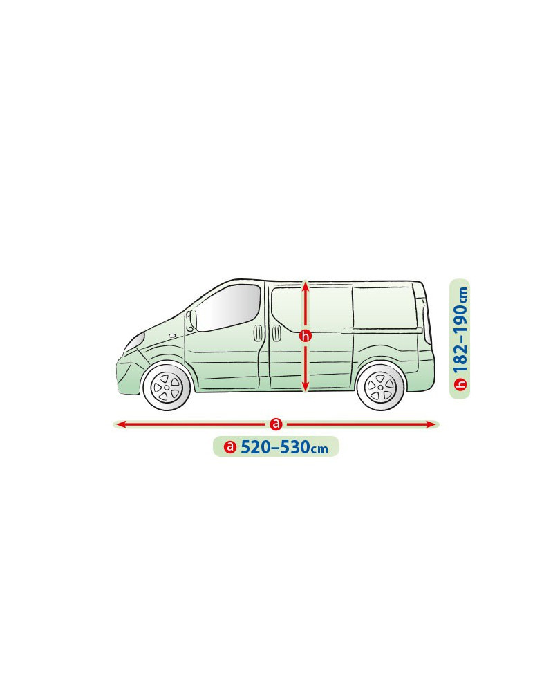 -kryje celé vozidlo, lehce přesahuje jeho spodní část;