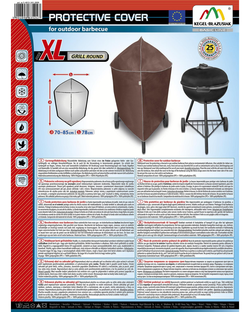 Nepromokavý obal na zahradní gril na dřevěné uhlí a plyn určený k ochraně proti nepříznivým povětrnostním podmínkám a k přechovávání grilu venku. Vhodný také k použití uvnitř budov. Chrání zahradní gril proti dešti, sněhu, jinovatce, slunečním paprskům (škodlivému UV záření) a nečistotám, jako je prach, ptačí trus nebo míza stromů. Nepromokavý obal je zcela odolný proti povětrnostním podmínkám a lze ho používat po celý rok.