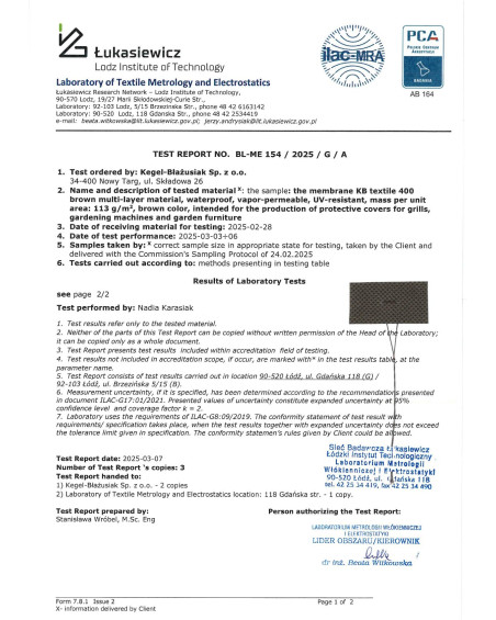 Dobrá krycí plachta musí chránit automobil nejen před atmosférickými srážkami, znečištěním a slunečními paprsky, ale musí být také bezpečná. Právě takové jsou krycí plachty na auta značky Kegel-Błażusiak. Naši odborníci se věnují dlouhodobým zkouškám krycích plachet na automobily. Testujeme je z hlediska účinnosti ochrany proti povětrnostním vlivům, odolnosti proti vodě, propustnosti vodních par směrem ven, bezpečnosti materiálu plachty vůči laku vozidla a účinnosti připevnění plachty na vozidle za běžného i extrémního počasí. Na trh dodáváme pouze takové výrobky, které v dlouhodobých testech dopadly pozitivně.