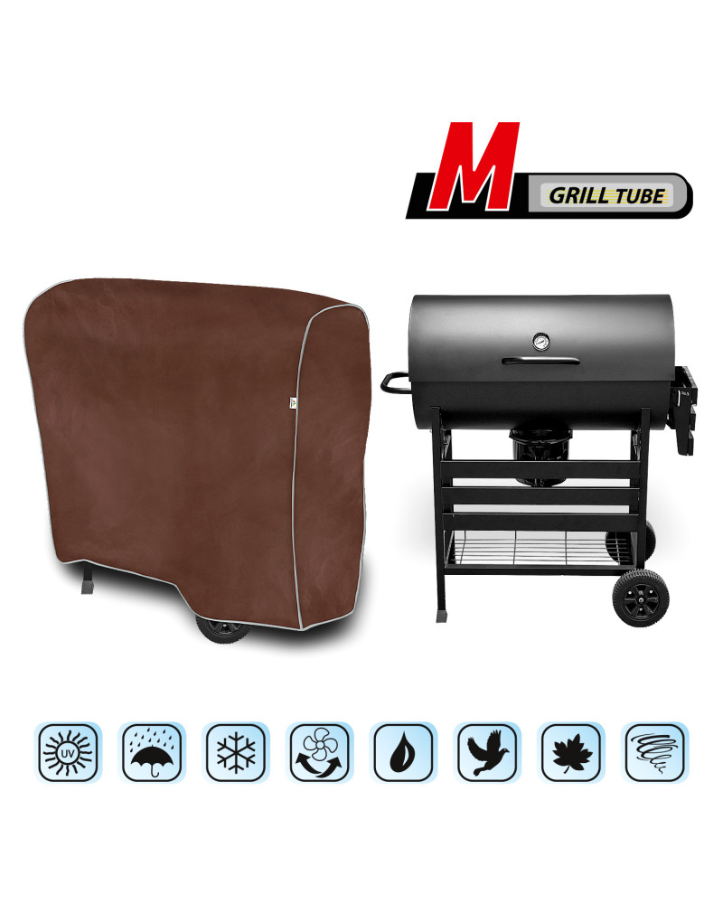 Nepromokavý obal na zahradní gril na dřevěné uhlí a plyn určený k ochraně proti nepříznivým povětrnostním podmínkám a k přechovávání grilu venku. Vhodný také k použití uvnitř budov. Chrání zahradní gril proti dešti, sněhu, jinovatce, slunečním paprskům (škodlivému UV záření) a nečistotám, jako je prach, ptačí trus nebo míza stromů. Nepromokavý obal je zcela odolný proti povětrnostním podmínkám a lze ho používat po celý rok.