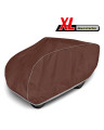 Krycí plachta na benzínový zahradní traktor celoročně parkovaný venku k ochraně před nepříznivými povětrnostními podmínkami. Speciální složení plachty zajišťuje, že voda při dešti neproniká pod plachtu, stéká po ní dolů a plachta nezadržuje vodní páru. Chrání zahradní traktor proti dešti, sněhu, jinovatce, slunečním paprskům (škodlivému UV záření) a nečistotám, jako je prach, ptačí trus nebo míza stromů. Snižuje působení koroze a stárnutí plastových součástí, chrání svrchní lak a chromované prvky proti blednutí a ztrátě lesku. Krycí plachta je zcela odolná proti každému počasí.