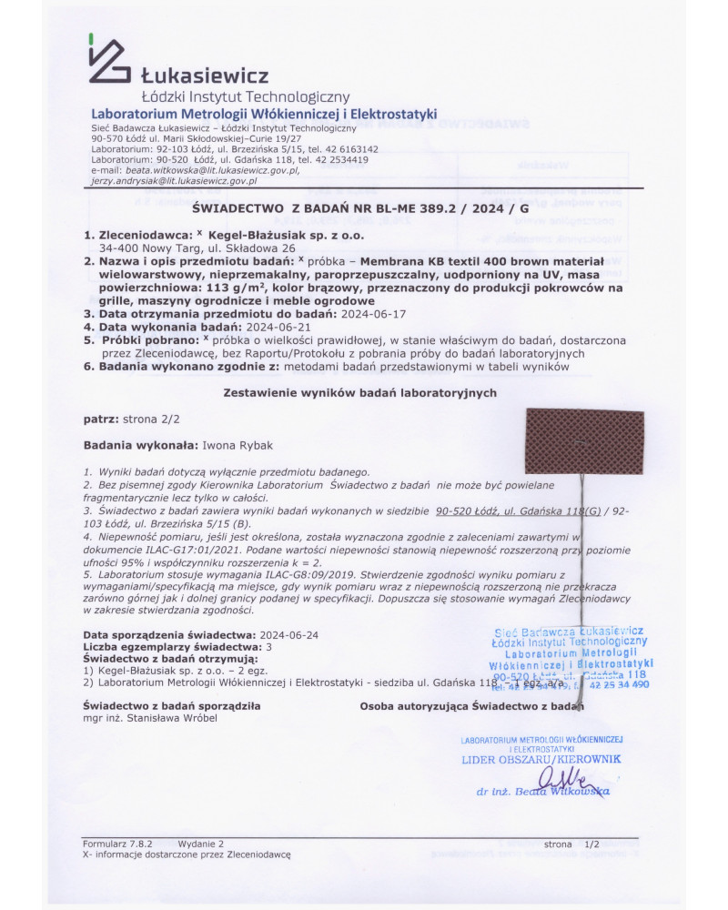 Dobrá krycí plachta musí chránit automobil nejen před atmosférickými srážkami, znečištěním a slunečními paprsky, ale musí být také bezpečná. Právě takové jsou krycí plachty na auta značky Kegel-Błażusiak. Naši odborníci se věnují dlouhodobým zkouškám krycích plachet na automobily. Testujeme je z hlediska účinnosti ochrany proti povětrnostním vlivům, odolnosti proti vodě, propustnosti vodních par směrem ven, bezpečnosti materiálu plachty vůči laku vozidla a účinnosti připevnění plachty na vozidle za běžného i extrémního počasí. Na trh dodáváme pouze takové výrobky, které v dlouhodobých testech dopadly pozitivně.