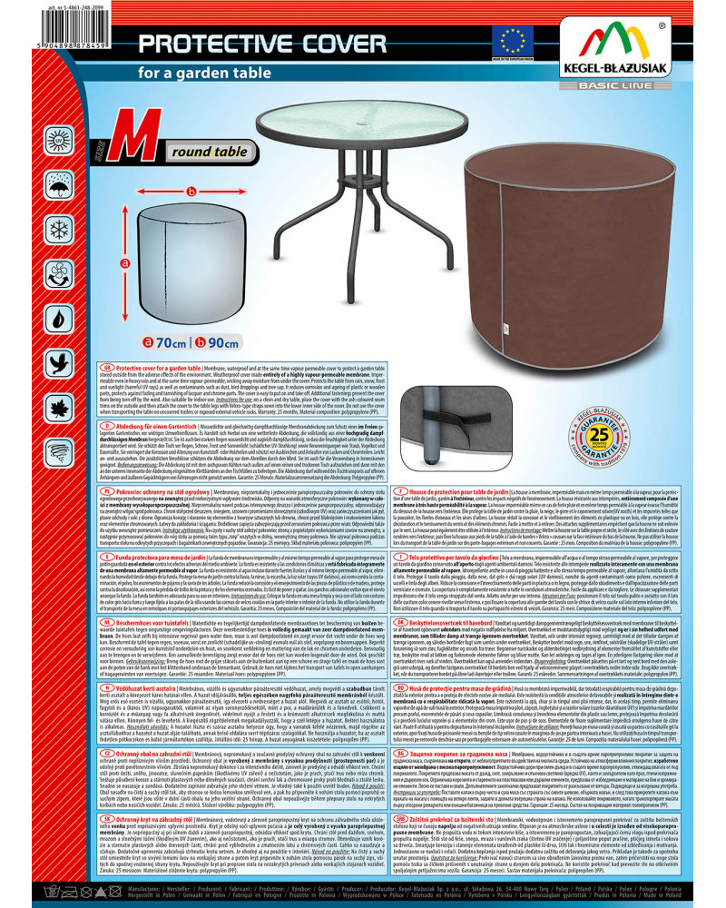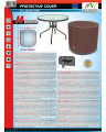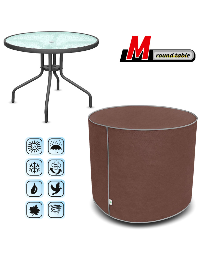 Ochranný obal na zahradní stůl k celoroční venkovní ochraně proti nepříznivým vlivům počasí. Speciální složení obalu zajišťuje, že voda při dešti skrze něj neproniká, stéká po něm dolů a obal nezadržuje vodní páru. Chrání stůl proti dešti, sněhu, jinovatce, slunečním paprskům (škodlivému UV záření) a nečistotám, jako je prach, ptačí trus nebo míza stromů. Snižuje působení koroze a stárnutí plastových nebo dřevěných součástí, chrání svrchní lak a chromované prvky proti blednutí a ztrátě lesku. Ochranný obal je odolný proti každému počasí. Snadno se nasazuje a sundává. Dodatečné zapínání ho chrání proti stržení větrem. Lze ho používat také uvnitř budov.
