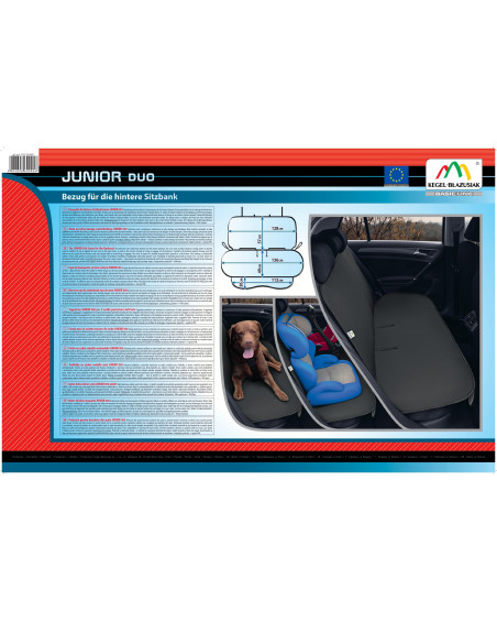 Ochranný potah s pěnovou vložkou na zadní sedadla auta. Výborně se osvědčí jako podložka pod dvě dětské autosedačky nebo jako potah pro převoz psa či zavazadel na zadních sedadlech. Chrání zadní sedadla proti poškození od autosedačky nebo zavazadel nebo nečistotám, které může způsobit dítě či pes, které vozíte na zadních sedadlech. Potah je vyrobený ze silné látky a tlusté pěny, a proto představuje pohodlnou podložku, která chrání zadní sedadla a zvyšuje jejich pohodlí. Lze ho použít pod autosedačky s isofixem. Umožňuje připoutání psa za vodítko, které lze zapnout do zámku bezpečnostního pásu.