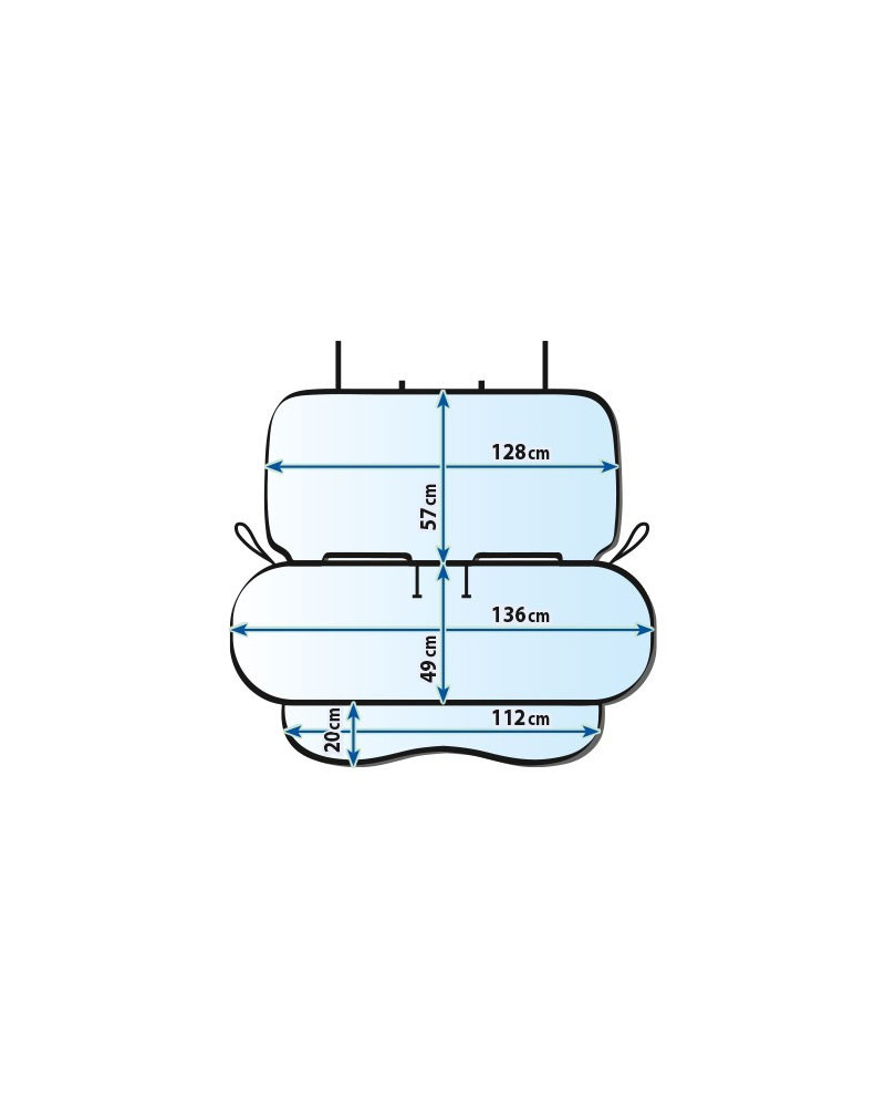 Ochranný potah s pěnovou vložkou na zadní sedadla auta. Výborně se osvědčí jako podložka pod dvě dětské autosedačky nebo jako potah pro převoz psa či zavazadel na zadních sedadlech. Chrání zadní sedadla proti poškození od autosedačky nebo zavazadel nebo nečistotám, které může způsobit dítě či pes, které vozíte na zadních sedadlech. Potah je vyrobený ze silné látky a tlusté pěny, a proto představuje pohodlnou podložku, která chrání zadní sedadla a zvyšuje jejich pohodlí. Lze ho použít pod autosedačky s isofixem. Umožňuje připoutání psa za vodítko, které lze zapnout do zámku bezpečnostního pásu.