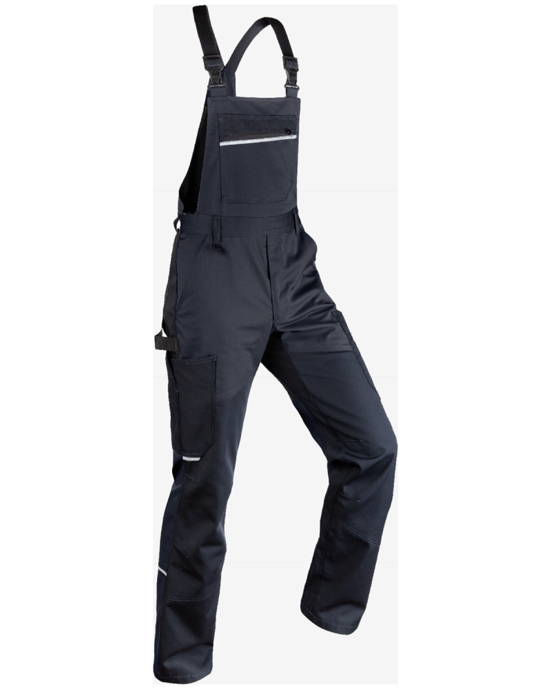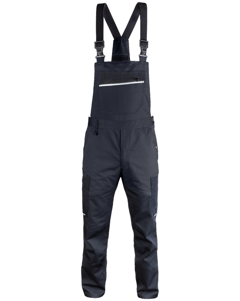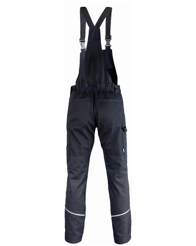 - Reflexní prvky: kapsa na náprsence, paspulky na stehenních kapsách, na zadní straně nohavic.