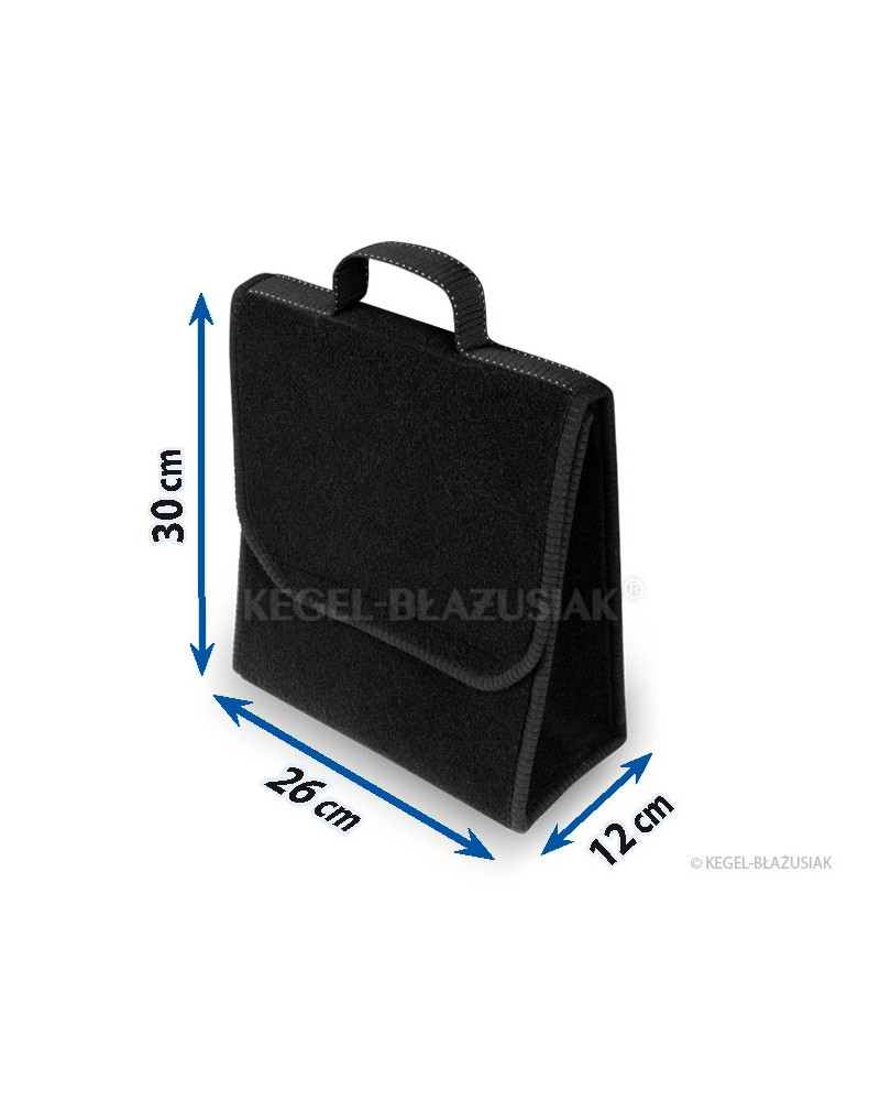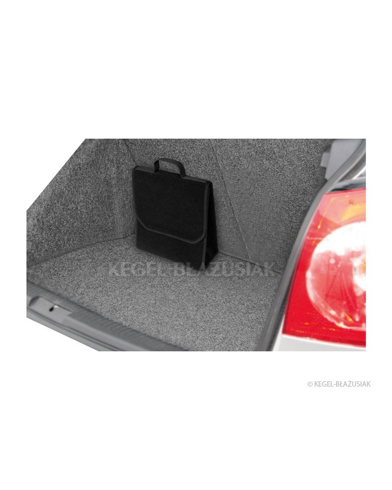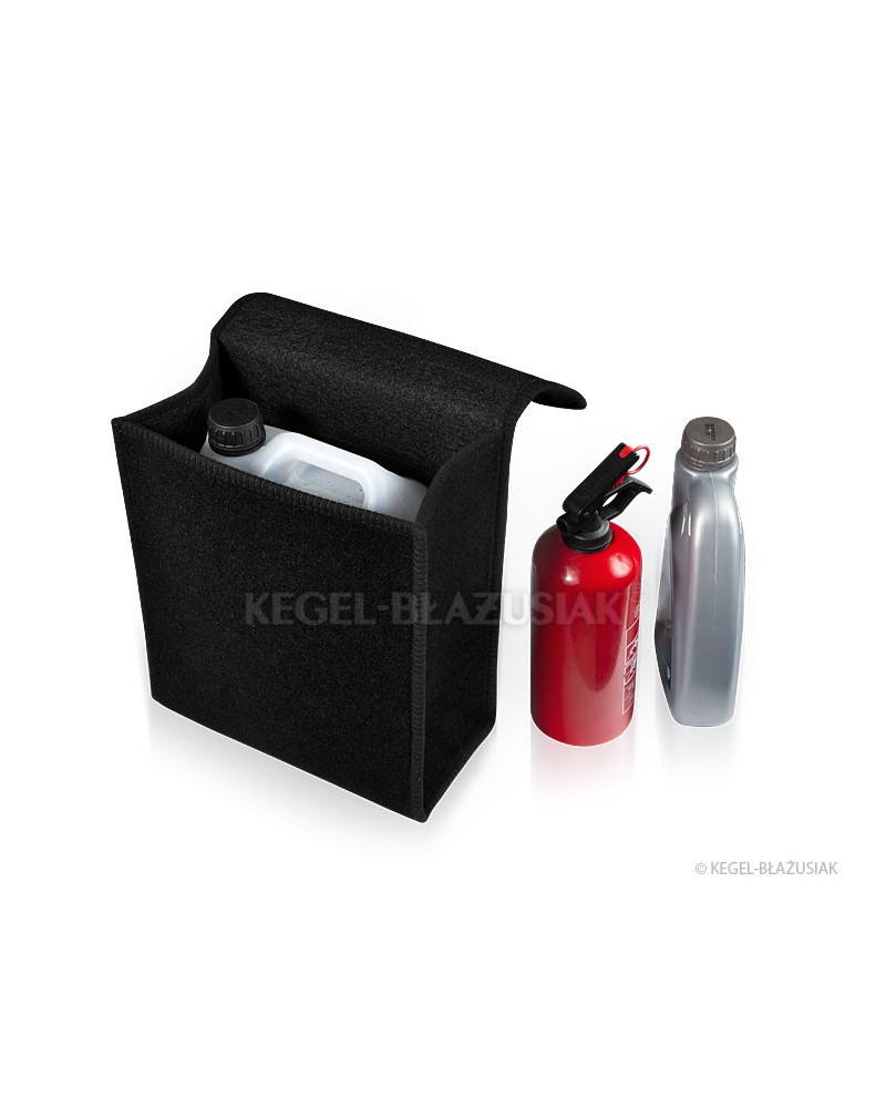 Taška do zavazadlového prostoru KANGAROO z řady BASIC LINE – nesmírně praktická a objemná taška do zavazadlového prostoru, zhotovená ze silného a pevného kobercového materiálu. Je vybavena suchými zipy - na dně a na zadní stěně, díky tomu ji lze spolehlivě připevnit na libovolném místě v zavazadlovém prostoru. Taška má také zapínání na silný suchý zip s možností regulace. V tašce lze skladovat všechny předměty, dokonce i ty velmi těžké nebo s ostrými hranami. Umožní uskladnění pětilitrové nádoby s motorovým olejem nebo kapalinou do ostřikovačů, kilového hasicího přístroje a jiného nářadí potřebného v autě - sady žárovek, příslušenství. Taška díky svému praktickému, svislému tvaru nezabere příliš místa, a díky uchu se snadno přenáší. Taška do zavazadlového prostoru ORDNUNG umožní shromáždit všechny předměty nezbytné během jízdy autem na jednom místě a kromě toho ochrání zavazadlový prostor před zničením.