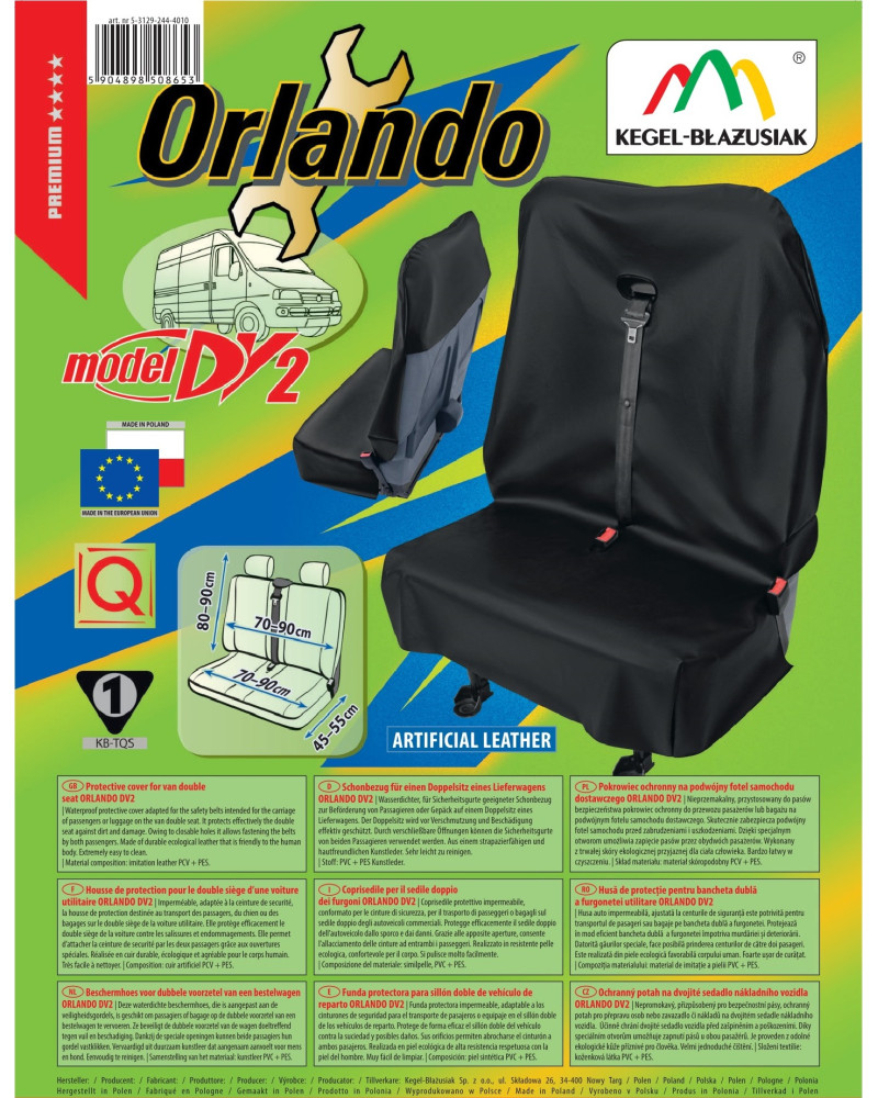 Ochranný potah ORLANDO pro převážení cestujících, psa nebo zavazadel na dvojsedačce dodávkového automobilu skutečně ochrání sedačku před nečistotami a poškozeními všeho druhu. Skvěle si povede při převážení osob, které jezdí ve špinavém pracovním oděvu, psa nebo zavazadel. Ve střední části má zip, který umožňuje kdykoliv odkrýt zásuvku bezpečnostního pásu. Díky tomu je možné převážet dva cestující se zapnutými bezpečnostními pásy nebo jednoho pasažéra a psa, který může být také připoután do zásuvky bezpečnostního pásu pomocí bezpečnostního vodítka do auta. Díky potahům ORLANDO si nemusíte dělat starosti o čalounění svého auta. Potah je velmi užitečný v mnoha situacích a jeho funkčnost naplní nejvyšší očekávání - všechny jeho funkce spojuje společný jmenovatel - SPOLEHLIVÁ OCHRANA.