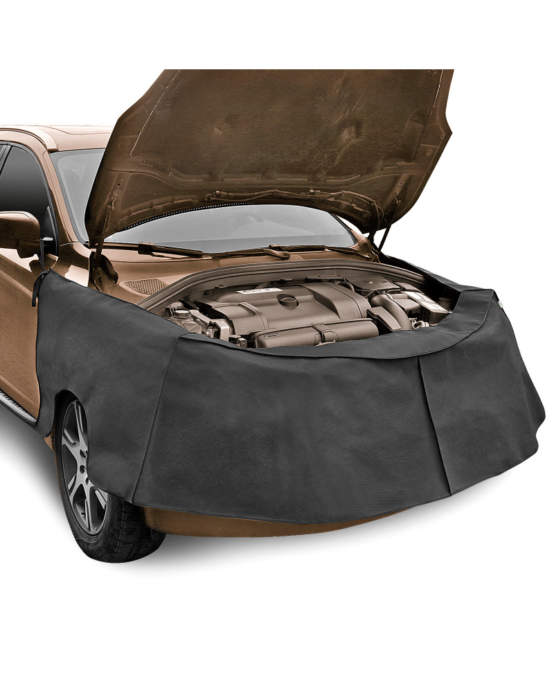 Ochranný potah MAXIMUS II byl navržen s ohledem na automechaniky a zaměstnance autoservisů, aby ochránil přední část opravovaného auta společně s jeho boky před poškrábáním a znečištěním a aby mechanikům zajistil pracovní komfort. Ochrání celou přední část kolem motorového prostoru a boky opravovaného automobilu, díky tomu může zaměstnanec dílny neomezeně opravovat auto bez obav, že by poškodil karosérii. Potah je vyroben z nesnadno promokavé a olejivzdorné textilie SPUNBOND- materiálu, který zajistí spolehlivou ochranu auta. Jemná látka na vnitřní straně plachty nepoškrábe karosérii. Ekologický výrobek, určen k opakovanému použití. Vyrobena v univerzální velikosti - dá se použít na každém modelu automobilu. Snadná montáž - pevně se připevňuje s pomocí protiskluzového materiálu, díky tomu se téměř sama „přilepí“ k opravovanému automobilu. Vybavena přídavnými gumičkami k zachycení o zrcátka pro zvýšení bezpečnosti. Neobsahuje žádné kovové díly. Potah se snadno čistí. Pohodlně se skladuje/převáží, protože po složení nezabere příliš místa. Při nákupu našich potahů máte jistotu, že získáte výrobek nejvyšší kvality.